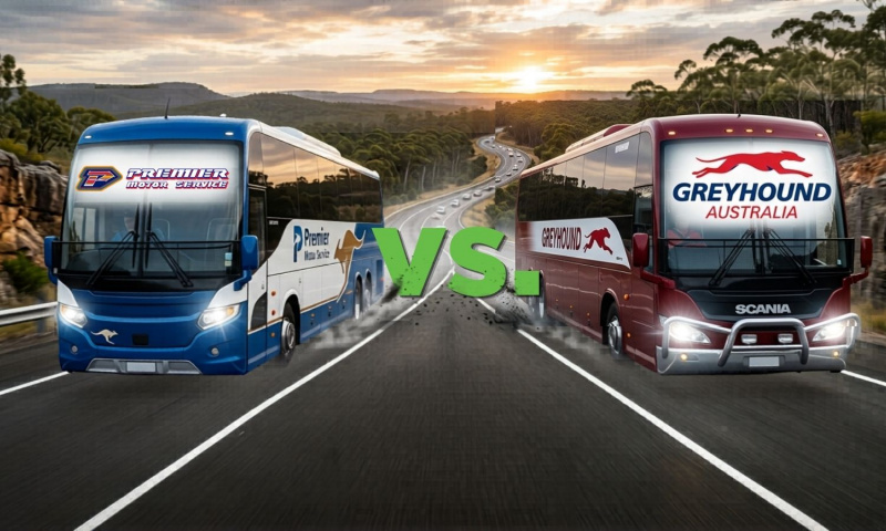 Premier Motor Service runs the East Coast daily, Eden to Cairns, one bus in each direction. Greyhound covers 180+ destinations nationwide with multiple daily departures on the big routes. Premier is consistently cheaper. If you're doing the East Coast on a tight budget and you're fine with one departure a day, Premier wins. If you need flexibility, frequency, or anything off-coast, Greyhound's your bus.