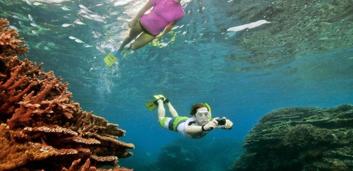 This morning you can tick off one of Australia's must-do activities—a full-day Great Barrier Reef tour. You'll board at 7:30 am for a day packed with fun and excitement as you explore the outer reef. With options to try snorkeling or even scuba diving, you'll spend up to 6 hours discovering two spectacular reef locations. Swim alongside schools of tropical reef fish and admire amazing coral formations. Learn about the underwater ecosystem during a glass-bottom boat cruise and Marine Biology presentation. It's a true bucket-list experience that you won't want to miss!