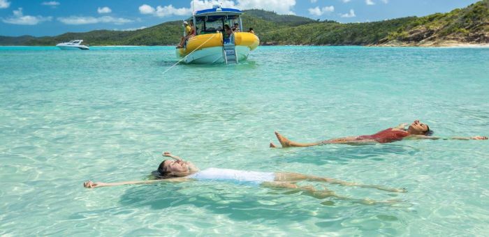 This unique full-day Whitsundays tour visits both the northern and southern ends of Whitehaven Beach. Enjoy approximately two hours relaxing on the world-famous white silica sand and enjoy a guided bushwalk to the spectacular Hill Inlet Lookout to view and capture photographs of the stunning swirling silica sands and aqua water. Snorkel for over an hour at Border Island, Dumbell Island, or one of our “secret” snorkel spots, enjoying the amazing hard and soft corals of the fringing reefs. You'll head back to Airlie Beach where you will stay for the night.