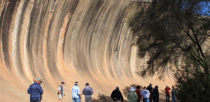 Heading east through the scenic Perth Hills you stop to enjoy morning tea (own expense) at historic York, the first township founded in the Avon Valley. Enjoy the wonderfully preserved turn of the century Victorian buildings and gain an insight into grand old pioneer days. From there, travel the Wheatbelt Highway through agricultural towns of Corrigin and Kondinin, stopping briefly at the famous Dog Cemetery; a tribute to Australian working sheepdogs. Then visit Hippo's Yawn an unusual natural rock formation shaped like a yawning hippopotamus, regarded by the local Aboriginal people as a special women's place. You then break for an Aussie country-style lunch at the Wildflower Shop.