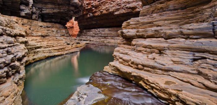 This, without any doubt, is one of Australia’s most magnificent national parks (and it’s not like Australia has any shortage of them). Freshwater springs trickle through chasms to form translucent rock pools, walking trails weave between dramatic rock ravines. A visit to the Karijini Cultural Centre will introduce you to the many sights you can expect to see here over the three days. Spend a full day exploring the gorges, gullies and secluded swimming spots of Karijini. Weano Gorge, Hancock Gorge, Dales Gorge and Oxers Lookout are just some of the better-known sites we’ll get to. Note: Total driving time today is one hour. Total walking distance is approximately six kilometres, some sections may be through water.