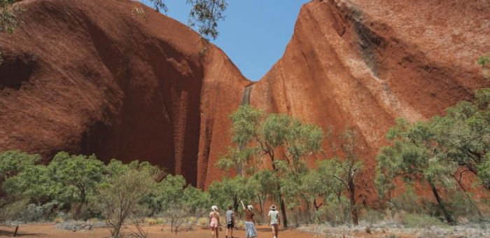 Departing from Yulara (Ayers Rock Airport) we join the rest of the group and head towards Uluru. (Guests will need to arrange their own lunch prior to pickup) Then it's off to the Red Centre’s Aboriginal interpretive cultural center. We have a chance to learn about the cultural, ecological, historical, and geological significance of this very special national park. Prepare to be awe-struck by the heart of the Red Centre and region-rich heritage and Aboriginal significance which you will learn more about at the interpretive cultural centre. Get up close and personal with Uluru, the colossal monolith, as you embark on a base walk to the Mutitjulu waterhole, discovering sacred rock art sites and ancient creation stories. Explore the remarkable Kantju Gorge, home to Central Australia's highest waterfall and an elders' cave, ending your day with a mesmerizing sunset at Uluru lookout, accompanied by a hearty dinner. Meals: Dinner (*lunch not included for guests being collected from Ayers Rock). Accom: Ayers Rock Coach Campground - Permanent Tents or Bush Swags (communal bathroom facilities). Driving Distance: 130km. Hike Distance: 2-3 km / 2-3 hours.