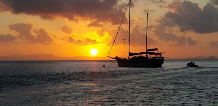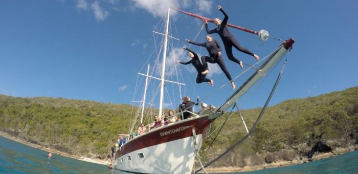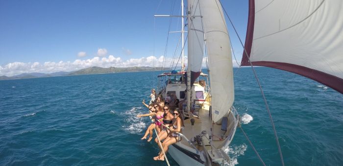 Sample Itinerary Only - Trips Depend on Tide and Weather Conditions Depart Airlie Beach at about 8.45am. Once on board our friendly crew will brief you about safety and sailing, before setting sail to cross the Whitsunday passage. Get involved with sailing, and take a turn at the helm under the guidance of our skill full crew. After morning tea, at 11am arrive at your first snorkelling destination, our crew will give you an introduction to snorkelling and take you ashore by dinghy to snorkel from the safety of a protected beach, a great way to gain confidence in the water. 12.30pm head back to the ship for a scrumptious buffet lunch of cold meats, salads and rolls, all freshly prepared on board. Then set sail for the next afternoon location. Set sail to our overnight anchorage at Nara Inlet, enjoy kayaking activities and visit the Aboriginal Caves and learn all about the Ngaro tribe from your crew. Enjoy a hot shower, afternoon Hor dourves, a cold beer or wine and hear our tree hugging crew tell some fascinating tales of life below and above the water on the Great Barrier Reef. Listen out for the friendly dolphin pods which frequent the Northern islands. Enjoy a delicious dinner, and enjoy some fun on the back deck, or find a quiet spot and star gaze before falling in to bed for a good nights sleep