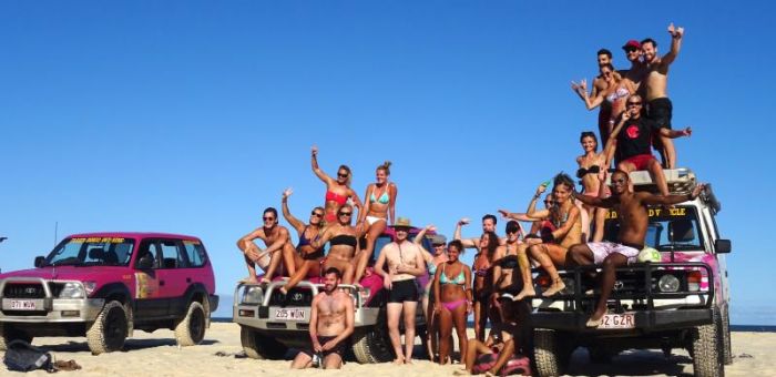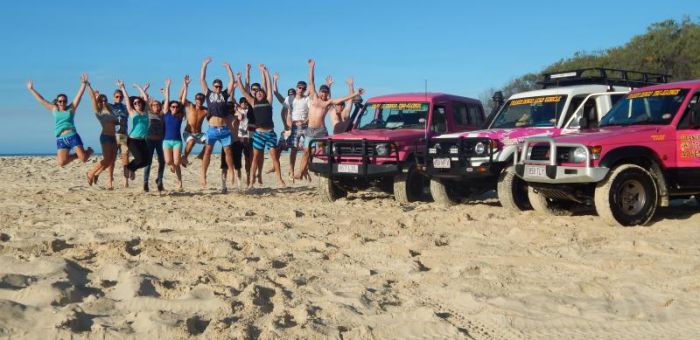 After getting organised at Fraser Dingo HQ in the morning, we all head out for a 30min stop at the shops (small shop, bottle shop, French Cafe). At 9:30am, we leave the shops to get to the barge, which leaves at 1015am to arrive 30min later at Wanggolba Creek. We drive across the Island & up 75 Mile Beach to Happy Valley for a BBQ lunch at about 1230pm, unpack gear & designate rooms at the ACCOMMODATION. After lunch, we visit Eli Creek, Maheno Shipwreck, the Pinnacles or Lake Garrawongerra if it's high tide! We then return to the accommodation around 0430pm for an afternoon relax or drink, volleyball on the beach etc. Dinner is at 7:00pm (pasta bolognese, veggies, garlic bread), enjoy games, night walk etc after dinner, noise curfew by 1030pm to be in great shape for Day 2!