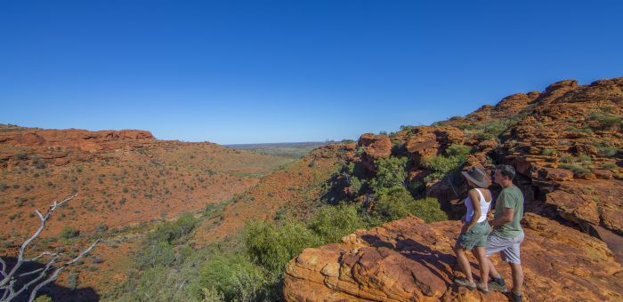 Today we head off to Watarrka (Kings Canyon) for a mind-blowing 6km walk through the towering walls, crevices and plateaus. We'll visit the Amphitheatre, Lost City and the tranquil Garden of Eden. Later we start making our way back to Alice Springs travelling on a typical Outback dirt road. We'll drop you back at your accommodation early evening and usually all meet later for an optional night on the town (Alice seems like the 'big smoke' after three days in the bush!)