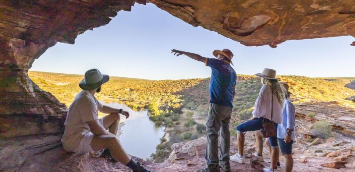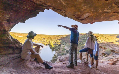 After a leisurely breakfast, we head to historical Northampton, one of the oldest towns in Western Australia. We’ll catch some heritage buildings dating back to the 1800s, and meet the artists at a First Nations gallery. Next up: the Pink Lake at Hutt Lagoon, which truly lives up to its name, before gazing in awe at the wind-eroded sandstone of Nature’s Window, the spectacular Z-Bend Gorge, and the Kalbarri Skywalk at Kalbarri National Park.