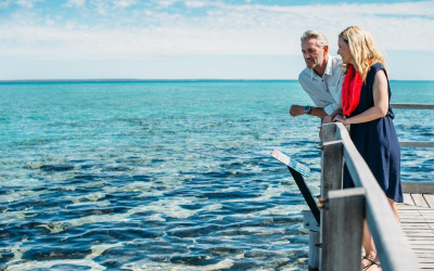 Today we are off Coral Bay, home to the World Heritage-listed Ningaloo Reef, the world's largest fringing reef. We'll embark on a glass-bottom boat tour and snorkel experience to see up to 250 species of coral and 500 species of fish. Further along the coast we visit Vlamingh Head Lighthouse, with stunning views, then rest up in Exmouth town.