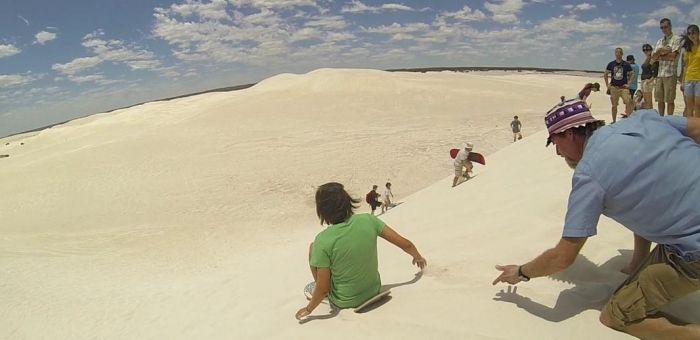 Pickups start at 7.30am at the YHA on Wellington Street and then continue around convenient locations in Northbridge and Highgate. Then drive up the famous Western Australian Coastal Beaches on what is called the Sunset Tourist Drive picking up customers at Scarborough Beach and Hillary's on the way. Your first stop is at Yanchep National Park for a close encounter with some koalas, in winter you will also be going down the Caves at Yanchep Park, but in summer you have a go at sandboarding in Lancelin. After lunch it is off to your overnight accommodation at Cervantes (Dorms) where there is time to chill out or walk down to the ocean for a swim and maybe see some of the local Sea Lions swimming close to shore. Then it's off to the famous Nambung National Park to see the world famous Pinnacles at Sunset, the only time to see them, and there might even be a Full Moon.