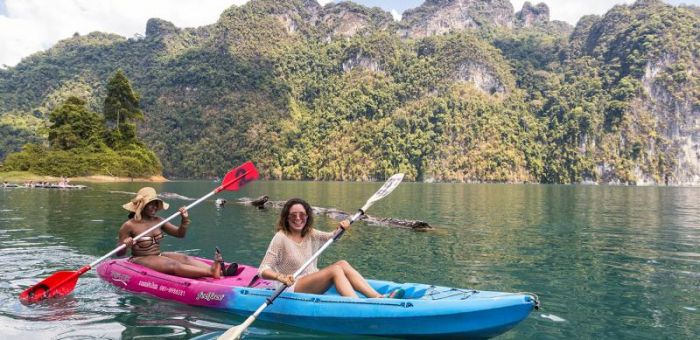 We'll wind through amazing limestone cliffs in a long-tail boat to a pristine freshwater lake and will stay overnight in floating bungalows. You’ll also go kayaking, tubing and monkey spotting!
