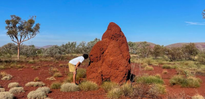 Drive from Port Hedland to Karijini. It’s a long drive to Karijini, but once you are there you should set up a camp for a few nights. There’s a lot to see. There are falls, swimming holes, hikes and incredible gorges. If you stop at a tourist information centre on the way you’ll be able to get some maps. We can recommend Mount Bruce, Dales Gorge and Fortescue Falls but there are more beautiful sights to see – which are included in our guidebook!