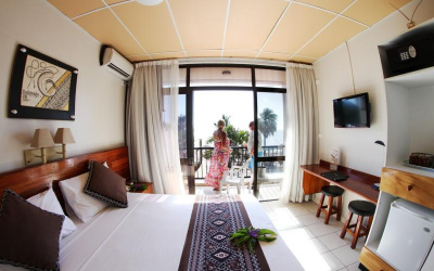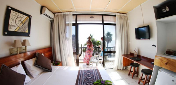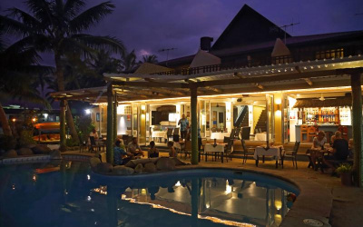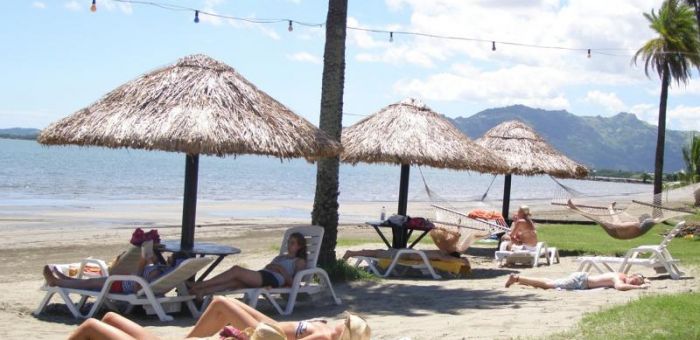 This boutique budget hotel is a smaller, quieter property situated on Wailoaloa Beach overlooking the offshore islands. It is a very comfortable place with friendly staff and a great atmosphere out around the swimming pool, bar and restaurant on the beach. Located 25 minutes from both the Nadi International Airport and Port Denarau in a quieter area of seaside accommodation.