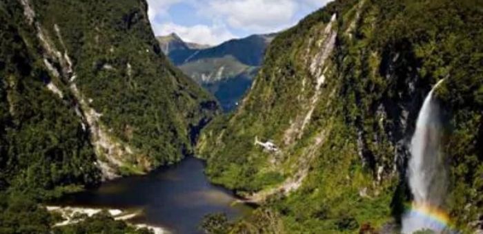 Departing from our lakeside Te Anau hangar, soar high above Lake Manapouri and deep into the heart of Doubtful Sound, which in te reo Māori is Patea, the ‘Place of Silence’, because of the serenity in this incredibly remote location. Our first landing is in Campbell’s Kingdom, a unique hanging valley suspended amidst mountains. This is the stuff of storybooks – the valley even has its own waterfall and lake! From here, fly above several more fiords before arriving at Milford Sound and touring Fiordland’s most famous destination. A Milford Sound scenic flight is the best way to see all the fiord has to offer – you’ll be amazed by the sheer granite cliffs and inky blue water. The second landing is at Lake Quill, high above Milford itself and the head of the spectacular Sutherland Falls, one of the highest waterfalls in the Southern Hemisphere.