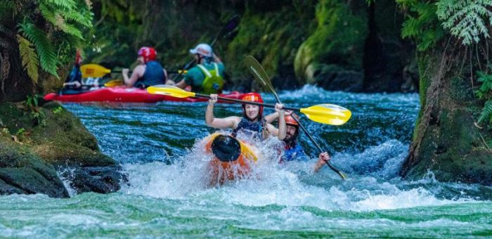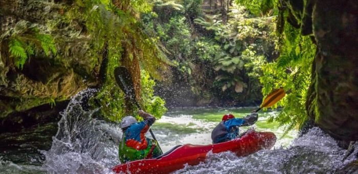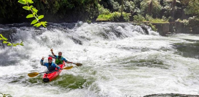 NZWA offers tandem kayak trips to anyone who wants to experience the amazing world of whitewater, head-on, for themselves or side-by-side with friends. No prior experience is required! In fact, this tour is the BEST whitewater kayaking excursion in the world for someone with no experience. Sign up and let us take you on a one-on-one trip down the famous Kaituna River, off the world's highest commercially kayaked waterfall and through 14 exciting rapids – all through an amazing river gorge, surrounded by subtropical native forest. (Average trip time is 45 minutes to one hour on the water.)