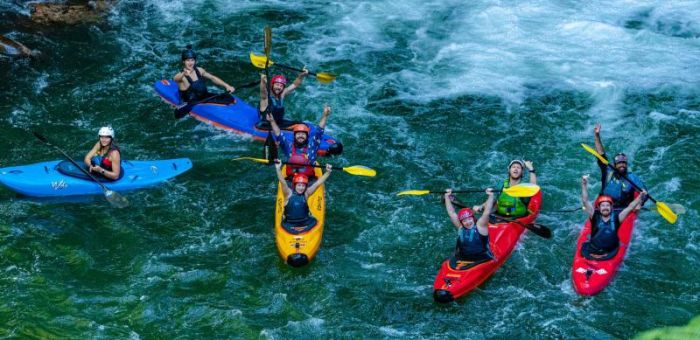 Tandem kayak tours are 1:1 ratio, (one instructor per one client) and include an additional kayaker alongside the tour for extra safety. We can accommodate four clients per trip – perfect for couples or groups of friends wanting to take on the river together! (Max weight 95 kg)