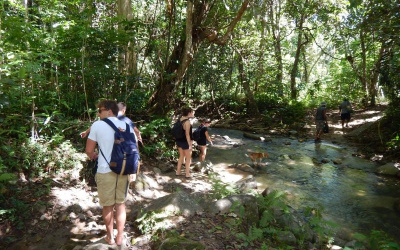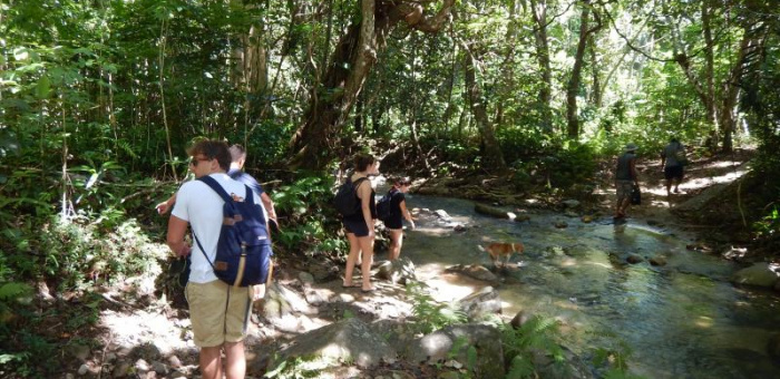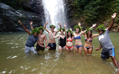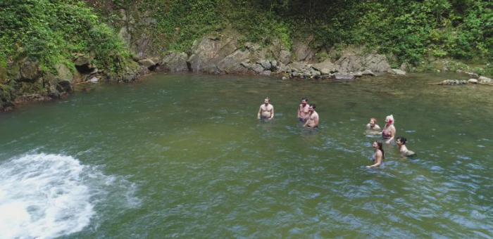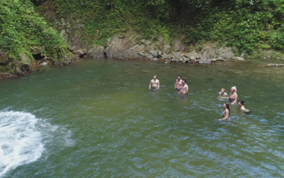 A 17km boat ride upriver, a walk through Sabata Village, a waterfall swim, a riverside BBQ lunch, and tubing back down the river. That's day three.