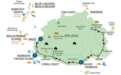 Day four hits the Sigatoka Sand Dunes for sandboarding, then the Sabeto thermal springs and mud pools before dropping you back to your Nadi accommodation.