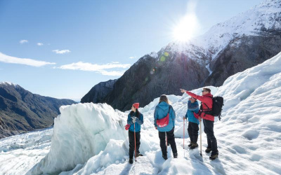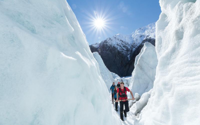 Join us for unforgetable adventure on the most incredible glacier experience. Check in at our base to get all the equipment you need for a glacier hike. Board your helicopter to the ice and witness 360 degree views of the Franz Josef Glacier valley, the Southern Alps and Tasman Sea. Strap on your crampons and embark on you glacier hike with your experienced glacier guide. See awe-inspiring glacial ice formations and follow hand cut stairs as you meander your way around the Franz Josef Glacier for two hours. Catch your helicopter back to base and reflect on a memory that will last a lifetime!