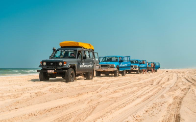 Start with breakfast on Fraser Island, before our cleaning and take down of our camp site. We then drive to the beginning of the Lake Wabby walk, where we walk through the sand dunes to this tropical paradise! Lunch follows our trip to Lake Wabby, before we begin our drive down the beach heading back to the barge. Once back on the mainland we head back to the 4WD shed where you unpack and quickly clean the cars. We return to Freedom Rainbow Beach between 3pm and 4pm