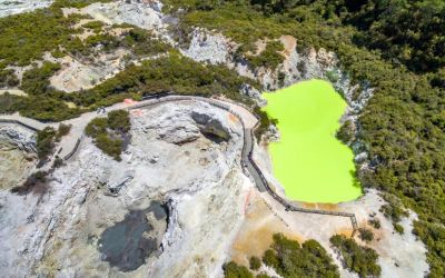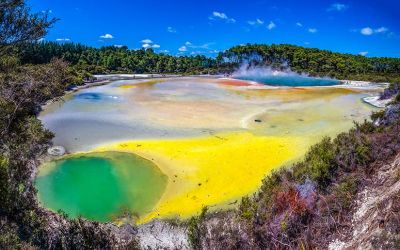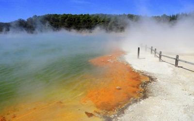 5. Wai-O-Tapu Geothermal Wonderland – Arriving at our second feature destination you will experience a fully guided tour of Wai-O-Tapu Geothermal Wonderland. Considered one of the most surreal places on earth, here you will see the famous Champagne Lake, Devil's Bath, local mud-pools, geothermal craters and other geothermal wonders. The colours and activity will take your breath away.