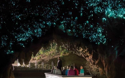 After you finish your Middle Earth Journey; we start heading to Waitomo Glowworm Cave where you will enjoy a 1 hour guided tour inside the Famous Waitomo Grotto including a boat ride in the underground Waitomo River.