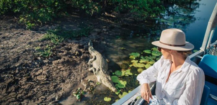 Join us for one of Darwin's most iconic, must-do activities… a ½ Day Jumping Croc Cruise on the Adelaide River. Departing the city, we journey about 60 km southeast towards the Marrakai wetlands, home to not only an apex predator, the crocodile, but 117 different species of reptiles and 280 different types of birds.