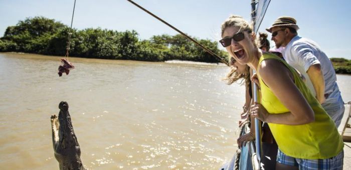 Not only will you be able to grasp the size and power of these creatures in safety up close, you will also be surrounded by an array of other wildlife that populate the area including barramundi, white-bellied sea eagles, whistling kites, bull sharks and black flying fox.