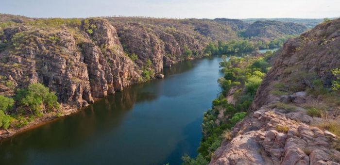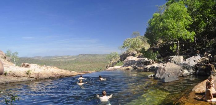 We have it all in front of us today! After some breakfast at camp, we pack up and head South through Kakadu National Park to Maguk (Barramundi Gorge). You’ll need your walking boots as you trek about 1 km along the (mostly) dry river through a paperbark forest to the gorge and waterhole. The water is super deep but refreshing. Chill out in the clear water, while taking in the surrounding pandanis and rustic cliff walls that have remained unchanged for thousands of years. It’s a special place! We head back to our 4WD and on to our next stop which includes short walk through the woodlands to Bukbukluk Lookout. We’ve earned another refreshing break this afternoon, so our next visit is to Ikoymarrwa (Moline Rockhole). This is a special permit area at a smaller but equally impressive waterhole. We depart Kakadu National Park, and head towards Nitmiluk National Park, home of the majestic Katherine River. This evening, we enjoy the sunset views over the Katherine River, before settling in at our camp.