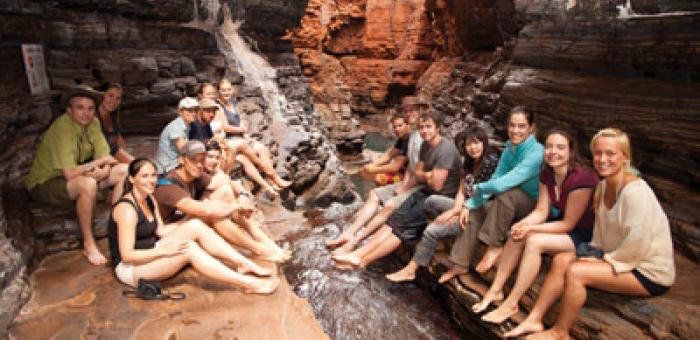 Head inland today through the vast cattle stations of the Pilbara region. The sparsely populated Pilbara desert is known for its red earth and rich mineral deposits. In the afternoon pass through the little town of Tom Price, which is renowned for its iron ore mining. Continue on to your campsite overlooking the magnificent Hamersley Range in Karijini. Before you go to sleep, take a minute to gaze up at one the most magnificent night skies you’re ever likely to see.