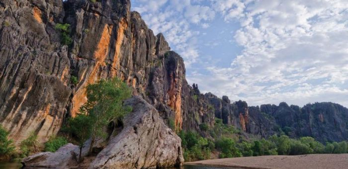 We set off and out of Perth pretty early today, so consider arriving a day or two early if you fancy getting to know Broome better. After a bit of highway driving we reach the Fitzroy River, then it’s all off-road to the Napier Range. The main attraction here is a guided walk-through Dimalurru (Tunnel Creek), a vast cave system that extends 750 metres underground. After an awesome day exploring it’s time to kick back at camp in the Western Kimberley around the campfire.