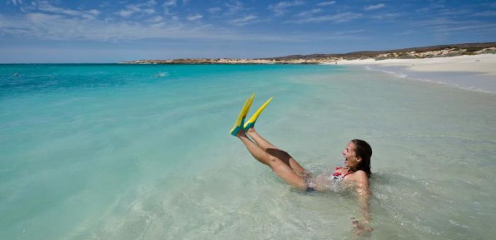 With endless beauty, it’s easy to imagine dinosaurs roaming the ancient interconnecting gorges of Kalbarri National Park. Carved out by the Murchison River and lined with red river gums, the towering cliffs are striped with a blood-red hue and contrast spectacularly with the azure hidden waterholes. Best vantage points are from Natures Window and Z-Bend lookouts or for the ultimate rush there’s the option of abseiling down. Toast the day in Denham, the gateway to Shark Bay