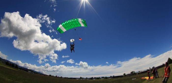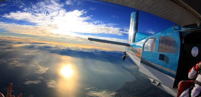 The best value and one of NZ's Highest Tandem skydives from 16,500ft! Your experience begins when you arrive at our base and meet with our friendly and passionate staff. We make sure every experience is individual and personal. You’ll view an instructional USB and we’ll give you a comprehensive briefing. Then we will suit you up with your jump gear and harness. You’ll meet your tandem master and cameraman then climb onboard our aircraft. You will enjoy a 20 minute scenic flight to altitude over two national parks, snow-capped mountains, golden beaches and turquoise oceans, Paradise! From 16,500ft you can see Mt Taranaki in the North Island and Mt Cook in the South Island. When it’s time for your jump, will you be nervous, excited or both? If this is your first time skydiving, then nothing can prepare you for the exhilaration and adrenalin you will feel in the moments before your jump. At altitude the door of the aircraft opens and the fun begins... you will experience 70+ seconds of freefall. During your skydive, you will look out at the expanse of country stretching out beneath you and have a sensation of unparalleled freedom. You will reach speeds of 200km/h through the air! The parachute will be open and you'll gently float back down to earth for a smooth landing in front of our base building.