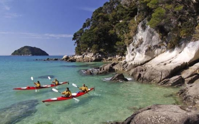 On this immersive kayak and walk combo, you’ll experience both sea and land come alive in the vibrant Marine Reserve section of Abel Tasman National Park.