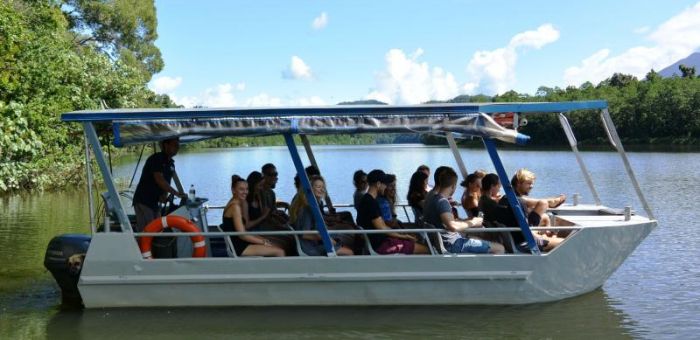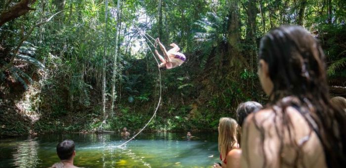 When we say Cape Trib, we also say crocodile cruise…seeing these ancient creatures on the mighty Daintree river is incredible. As low tide gives us the best chance to spot crocs our day revolves around the tides. This means that on some days we stop in Port Douglas in the morning and others in the afternoon. Lots of breathtaking places to visit, we walk though boardwalks to explore the rainforest and take you to a secret (croc free) swimming hole in the middle of the rainforest where only we go to.